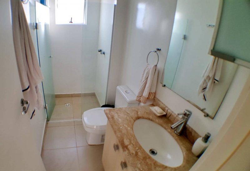 - 03 banheiros (01 social na sala de jantar, 01 na demi-suíte e 01 na suíte master);