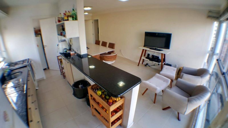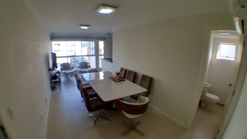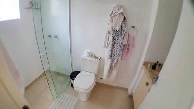 - Sala de jantar com banheiro social e sala de estar com sacada de vidro integrada;