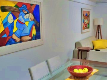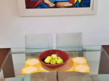 A sala de estar e jantar foi projetada para proporcionar momentos de convívio agradáveis. Seja para relaxar assistindo a um filme ou para realizar refeições em família, esse espaço aconchegante será o cenário perfeito. Além disso, a sacada com vista para o mar adiciona um toque especial ao apartamento, permitindo que você aprecie a paisagem deslumbrante e sinta a brisa marítima a qualquer momento do dia.