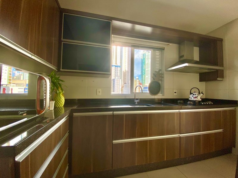 Apartamento em Balneário Camboriú com 03 dormitórios, sendo 01 suíte mais 02 demi-suítes, sala de estar e jantar, cozinha gourmet, churrasqueira e 02 vagas de garagem.
