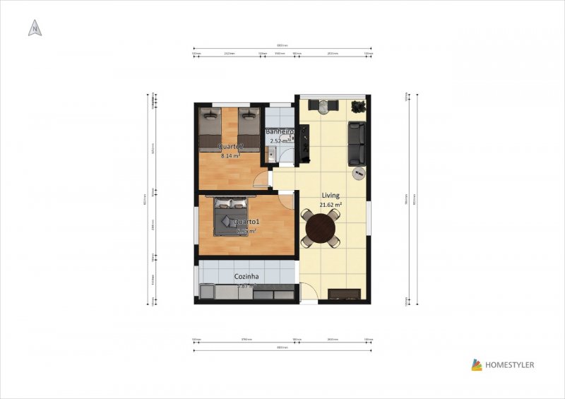 Layout: Living Ampliado; 2 quartos; 1 banheiro; 1 Vagas de Garagem Privativa;