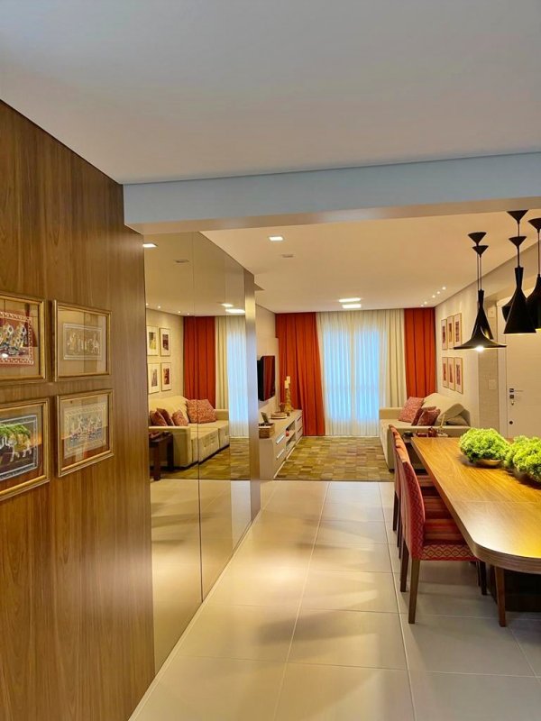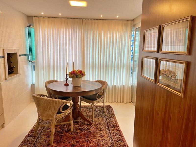 Apartamento Edifício Petra em Balneário Camboriú com 93,94m² privativos, mobiliado sob medida, equipado e decorado, 02 suítes, sala de estar e jantar, espaço gourmet com churrasqueira à carvão, cozinha, sacada integrada, área de serviço e 02 vagas de garagem privativas.