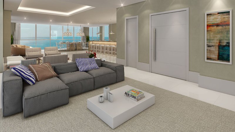 O Apartamento Tipo possui os ambientes sociais totalmente integrados e com 4 suítes muito espaçosas! Uma das suítes é Master, com closet, sala de banho e uma vista do mar de tirar o fôlego! Além disso, você pode contar com três vagas de garagem! É muito espaço e muito conforto!