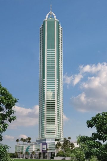 Primeiro edifício residencial que passou a linha dos 200 metros no Brasil. “Uma das premissas da FG sempre foi investir no ineditismo, em projetos de vanguarda e com arquitetura moderna, elegante e luxuosa. O Infinity Coast traduz todo esse conceito em um único projeto, com área de lazer que supera os 5 mil metros quadrados, considerado um resort particular.