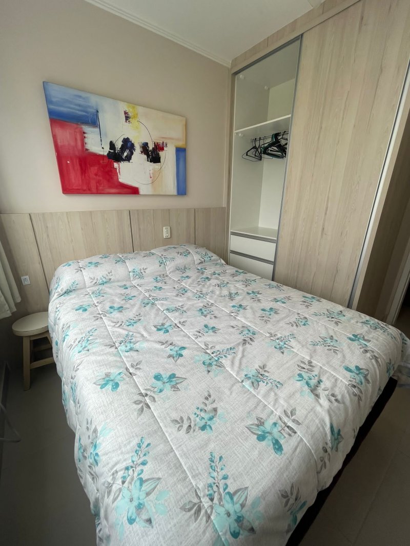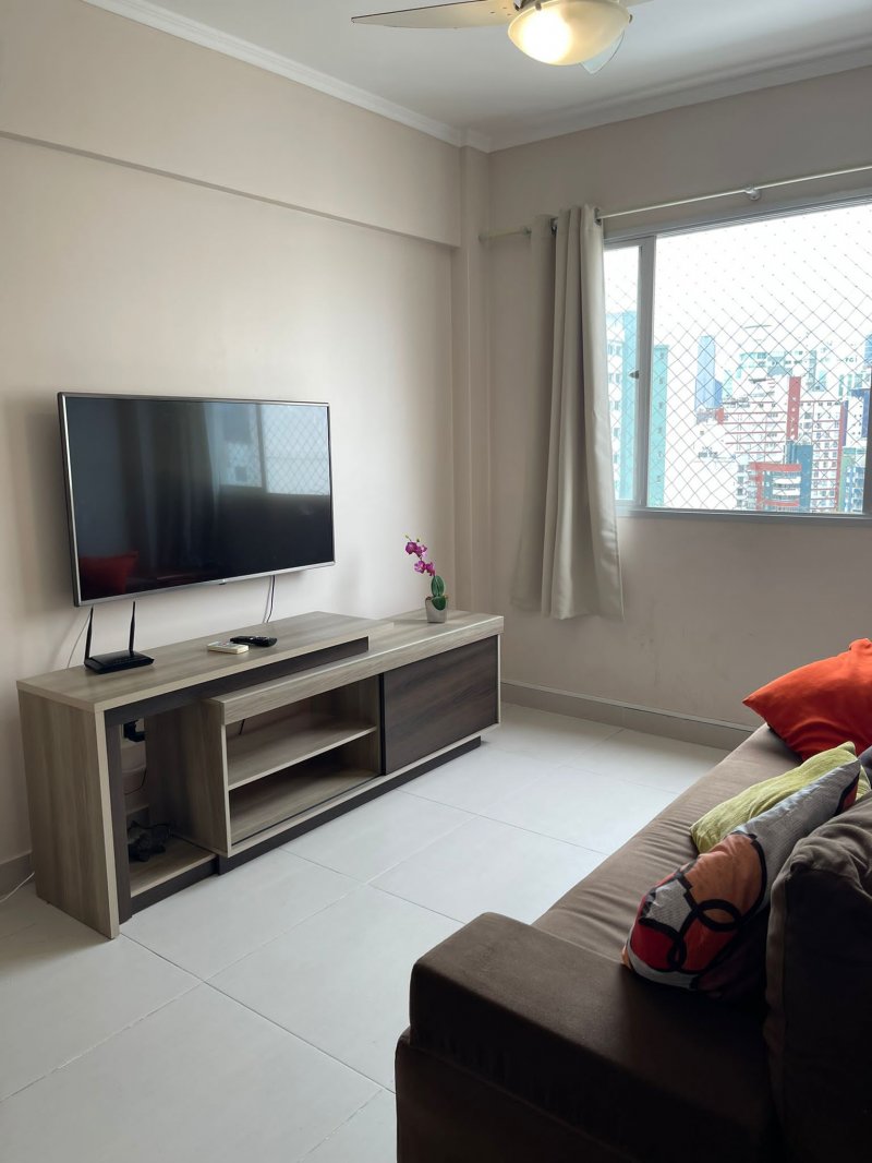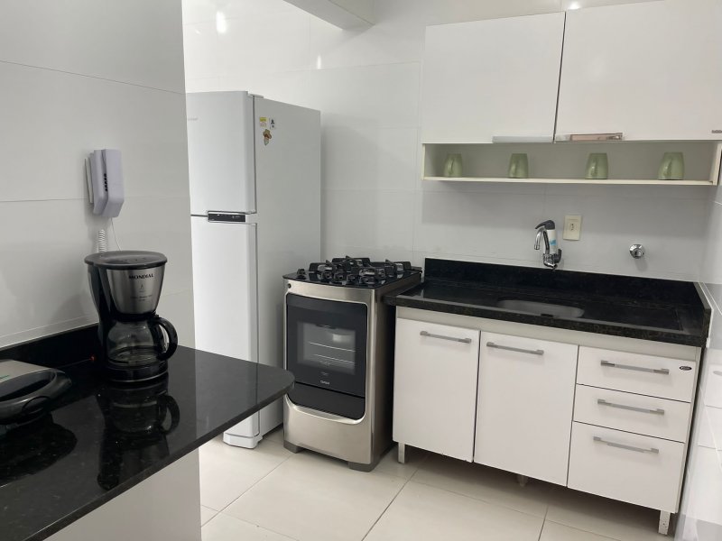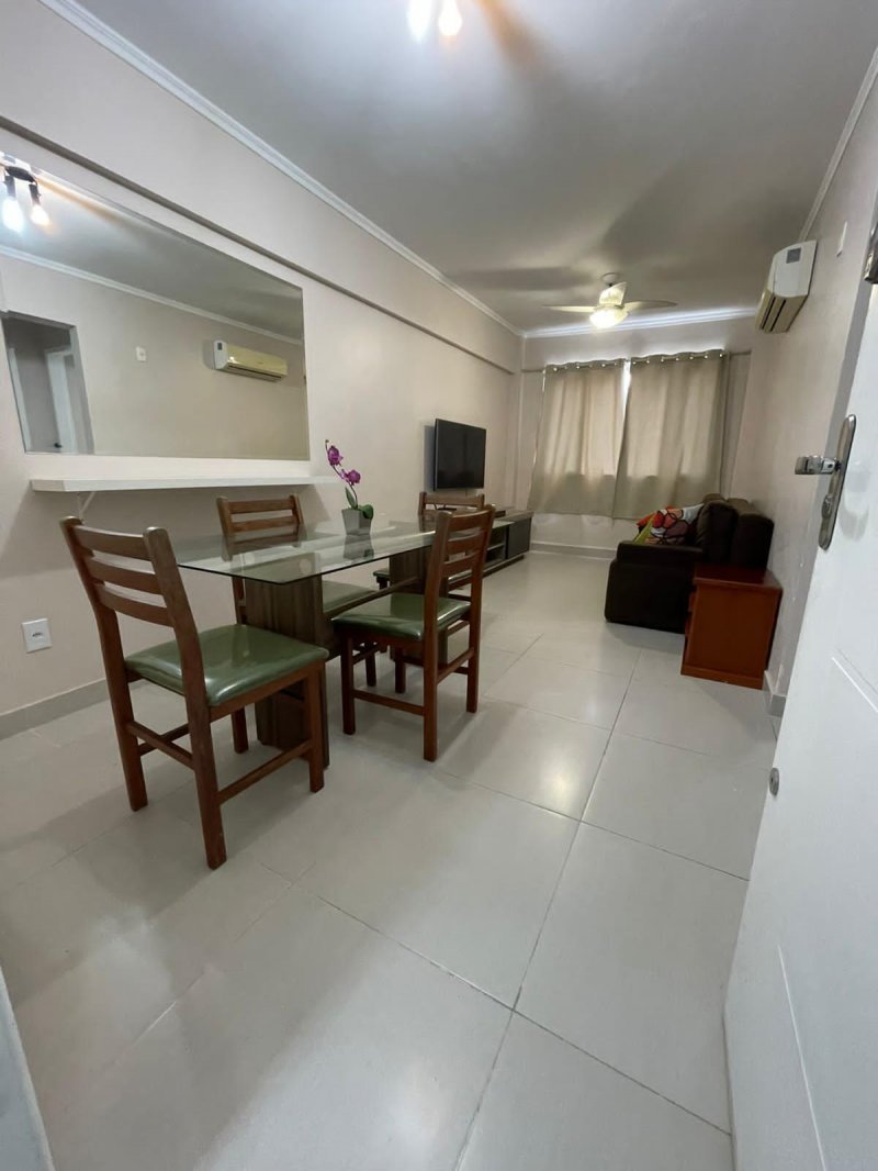 Imóvel mobiliado dispõe de 1 dormitório, sala de estar, sala de jantar, cozinha americana, internet, ar condicionado, piso cerâmico e uma vaga de garagem.