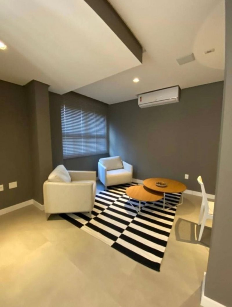 A área semi-mobiliada inclui móveis selecionados para proporcionar funcionalidade e estilo.