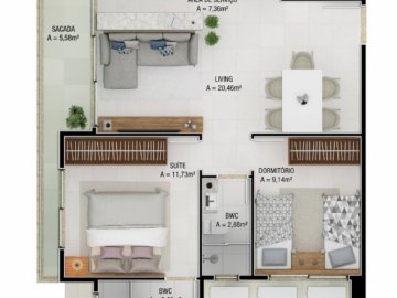 Apartamento à Venda com 2 dormitórios, sendo 1 suíte, 69m²
